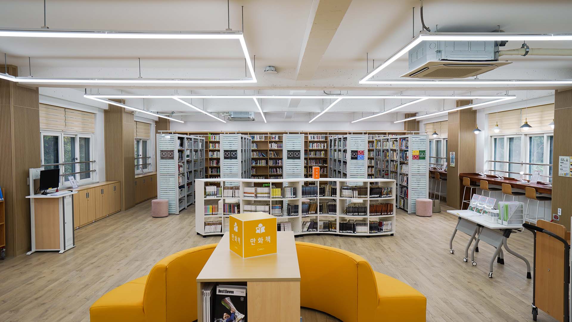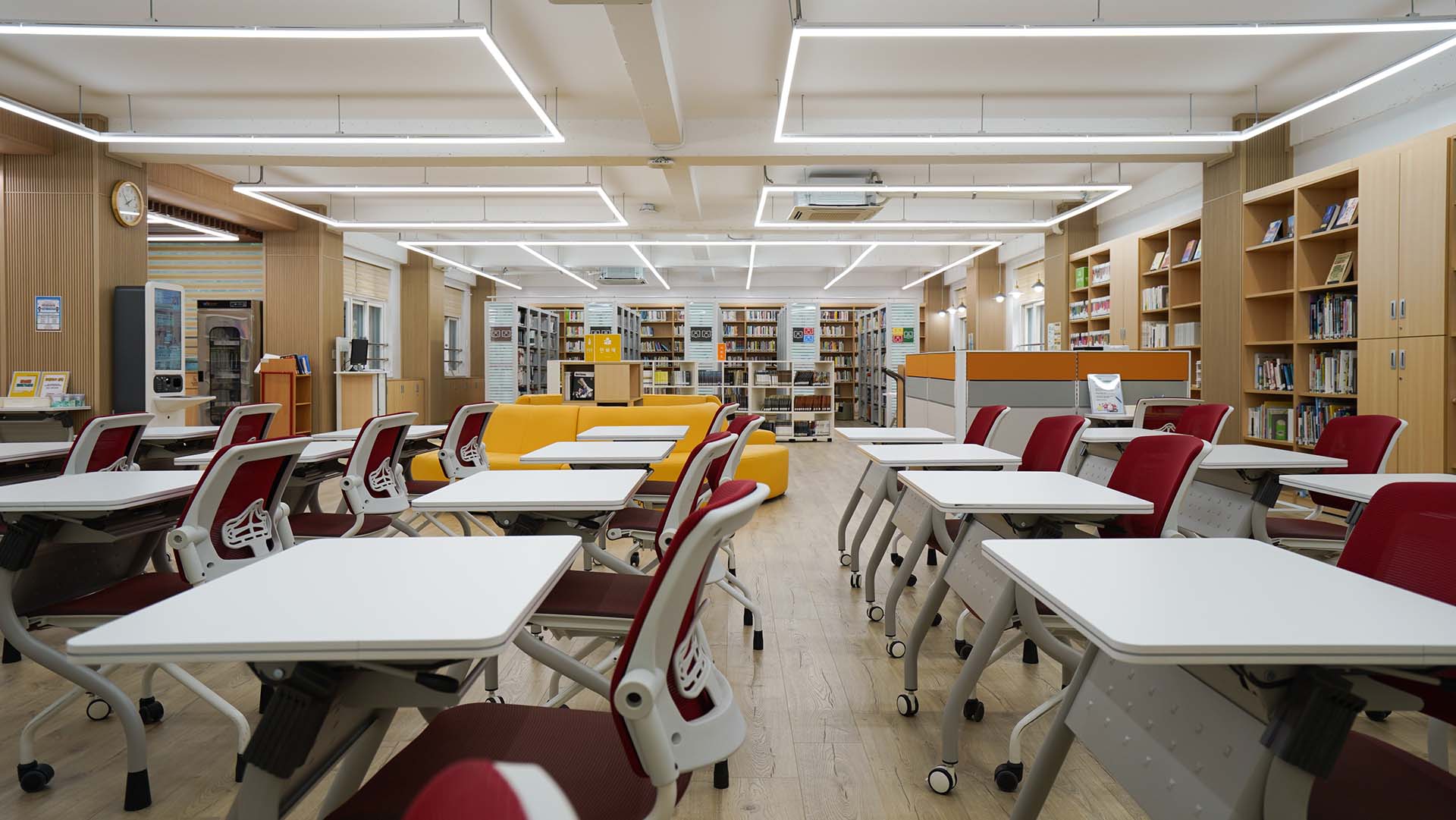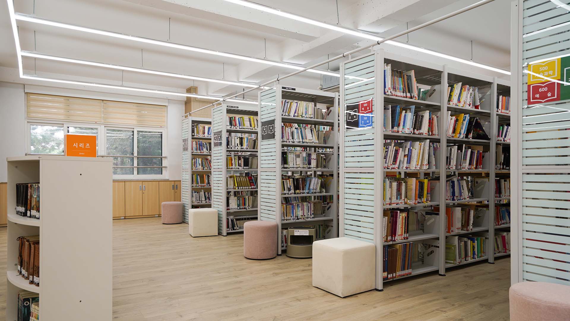회사소개 기업소개 보유 자격현황 조직도 상표등록증 프로젝트 건축 인테리어 설계사례 건축 인테리어 소통공간 블로그 유튜브 뉴스 문의 사무실 위치 간편견적요청 문의하기 TOP 프로젝트 학원/교육 프로젝트 여주 제일중학교 도서관 리모델링 위치 경기 여주시 가남읍 용도 교육시설 규모 50평 여주 제일중학교 도서관 리모델링 여주 가남읍 소재 중학교 도서관 전체 인테리어 리모델링 공사 Floor Plan Interior 목록으로