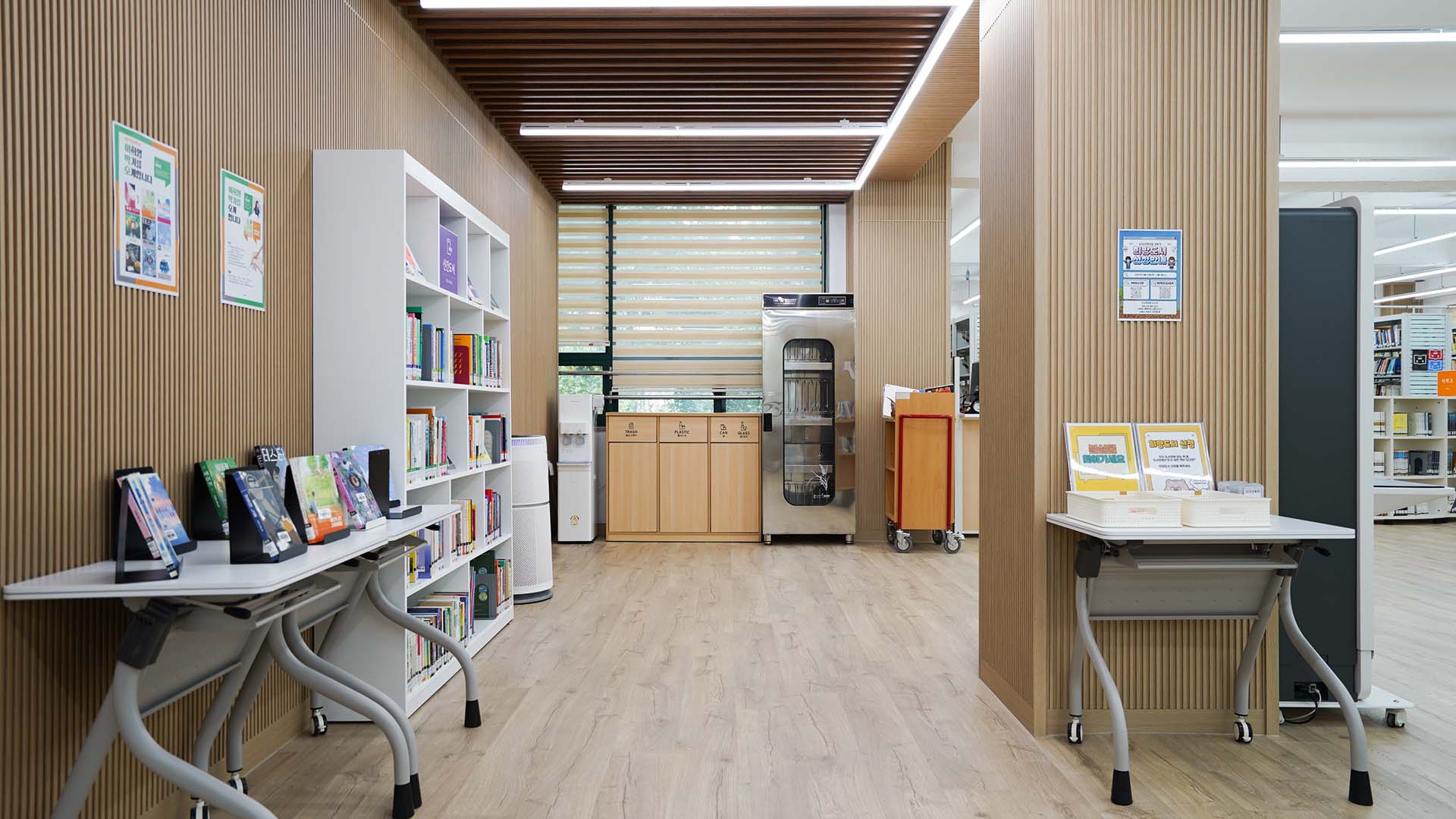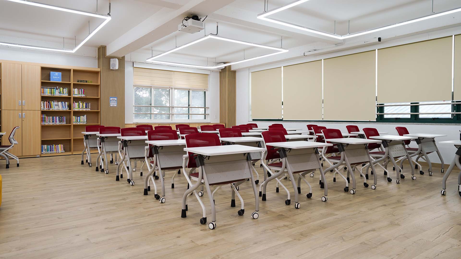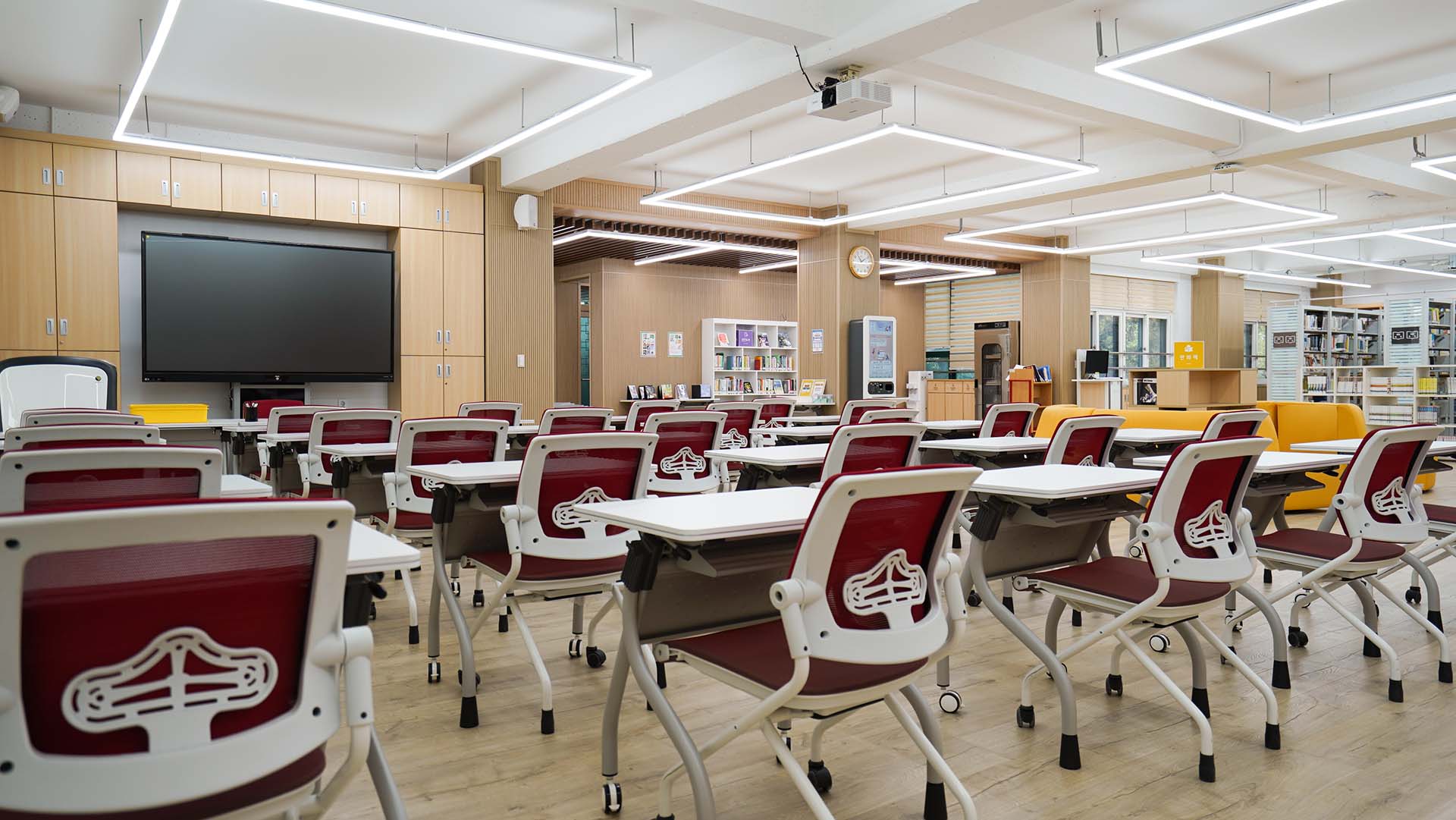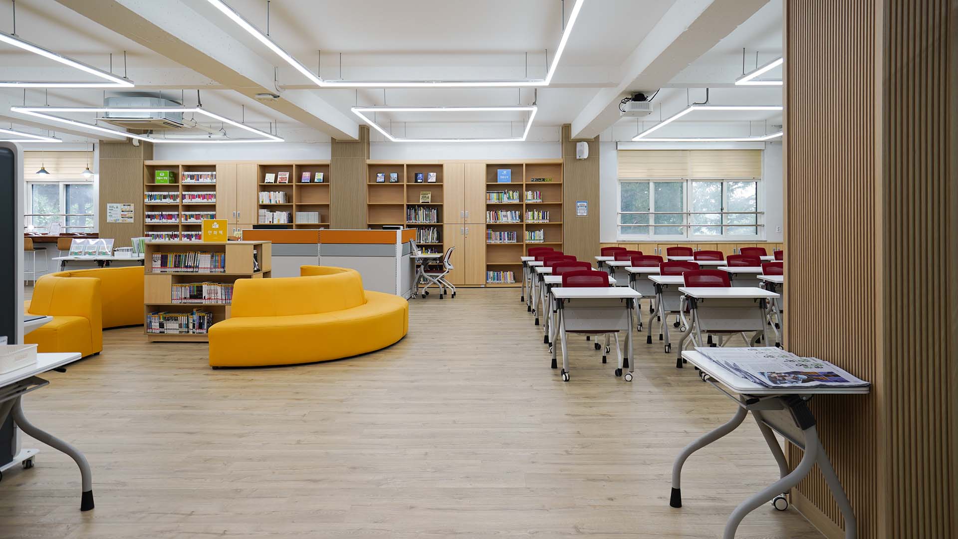 회사소개 기업소개 보유 자격현황 조직도 상표등록증 프로젝트 건축 인테리어 설계사례 건축 인테리어 소통공간 블로그 유튜브 뉴스 문의 사무실 위치 간편견적요청 문의하기 TOP 프로젝트 학원/교육 프로젝트 여주 제일중학교 도서관 리모델링 위치 경기 여주시 가남읍 용도 교육시설 규모 50평 여주 제일중학교 도서관 리모델링 여주 가남읍 소재 중학교 도서관 전체 인테리어 리모델링 공사 Floor Plan Interior 목록으로